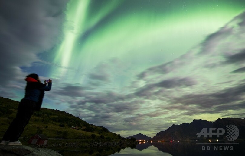 【9月9日 AFP】北極圏(Arctic Circle)にあるノルウェー・ロフォーテン諸島(Lofoten Islands)のレーヌ(Reine)に近いトースフィヨレン(Torsfjorden)で8日、オーロラが空を彩った。(c)AFP