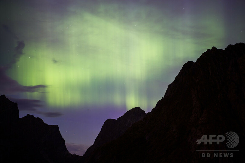 【9月9日 AFP】北極圏(Arctic Circle)にあるノルウェー・ロフォーテン諸島(Lofoten Islands)のレーヌ(Reine)に近いトースフィヨレン(Torsfjorden)で8日、オーロラが空を彩った。(c)AFP