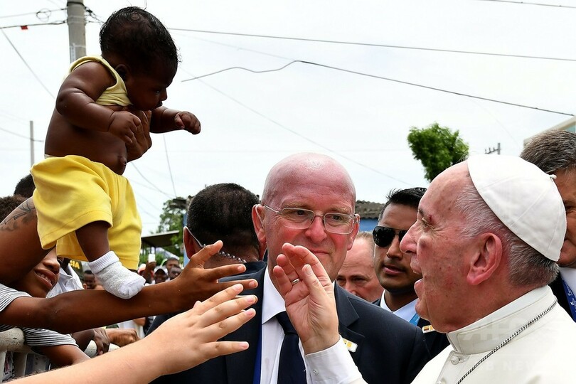 コロンビア訪問中の法王が眉を切るけが、専用車の急ブレーキで