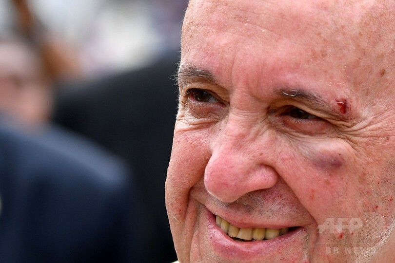 【9月11日 AFP】ローマ・カトリック教会のフランシスコ(Francis)法王(80)は10日、訪問中のコロンビアで専用車「パパモビル(Popemobile)」から信者らに手を振っていたところ、顔をガラスにぶつけて眉を切るけがをした。