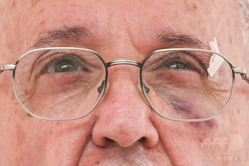 ローマ法王庁(バチカン)のグレッグ・バーク(Greg Burke)報道官は記者団に対し、「法王は無事だ。氷で冷やして手当てを受けた。訪問予定は変更なく続ける」と述べた。 (c)AFP