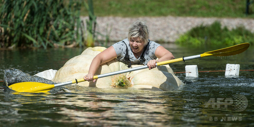 巨大カボチャのカヌーでスイスイ、恒例イベント開催 ドイツ