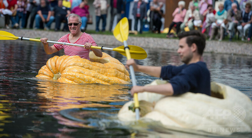 巨大カボチャのカヌーでスイスイ、恒例イベント開催 ドイツ