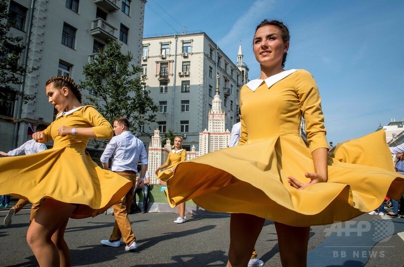 【9月11日 AFP】ロシアの首都モスクワ(Moscow)で10日、同市の設立870周年を祝う催し物が行われ、パフォーマンスを披露するダンサーや、市内にある彫像や建造物のレプリカと記念撮影をする人々でにぎわった。(c)AFP
