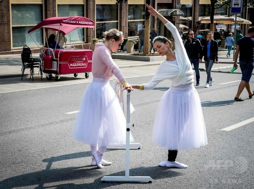 【9月11日 AFP】ロシアの首都モスクワ(Moscow)で10日、同市の設立870周年を祝う催し物が行われ、パフォーマンスを披露するダンサーや、市内にある彫像や建造物のレプリカと記念撮影をする人々でにぎわった。(c)AFP