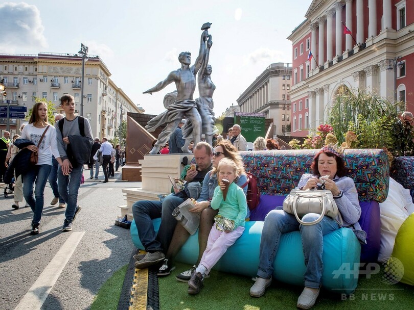 【9月11日 AFP】ロシアの首都モスクワ(Moscow)で10日、同市の設立870周年を祝う催し物が行われ、パフォーマンスを披露するダンサーや、市内にある彫像や建造物のレプリカと記念撮影をする人々でにぎわった。(c)AFP