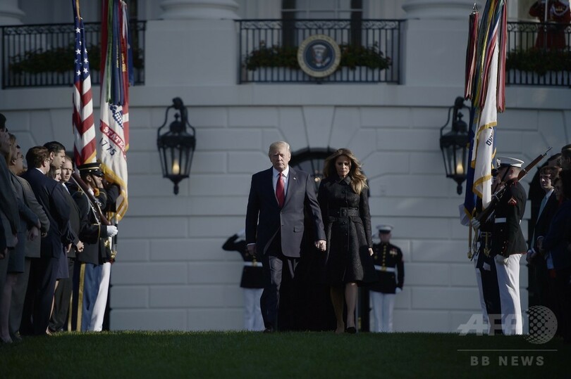 【9月12日 AFP】米首都ワシントン(Washington D.C.)のホワイトハウスで11日、2001年9月11日に発生した同時多発攻撃の追悼式典が行われた。ドナルド・トランプ(Donald Trump)大統領とメラニア(Melania Trump)夫人が出席し、犠牲者2977人に黙とうをささげた。