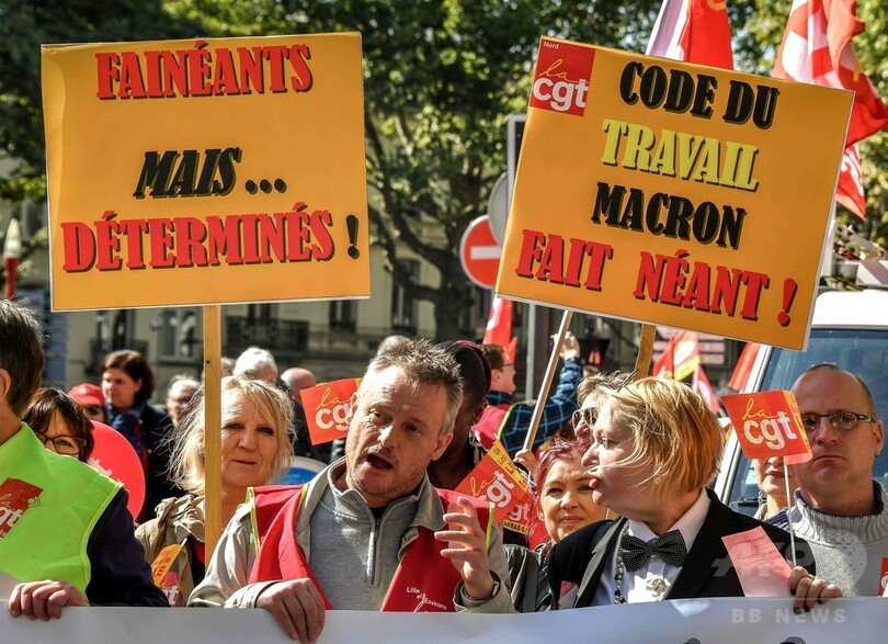 ストライキやデモが行われたこの日は、停滞する経済の立て直しに賭ける若き大統領、マクロン氏にとって試練となった。マクロン大統領は先週、批判勢力を「怠け者や皮肉屋、過激派」と呼び反感を買っていた。