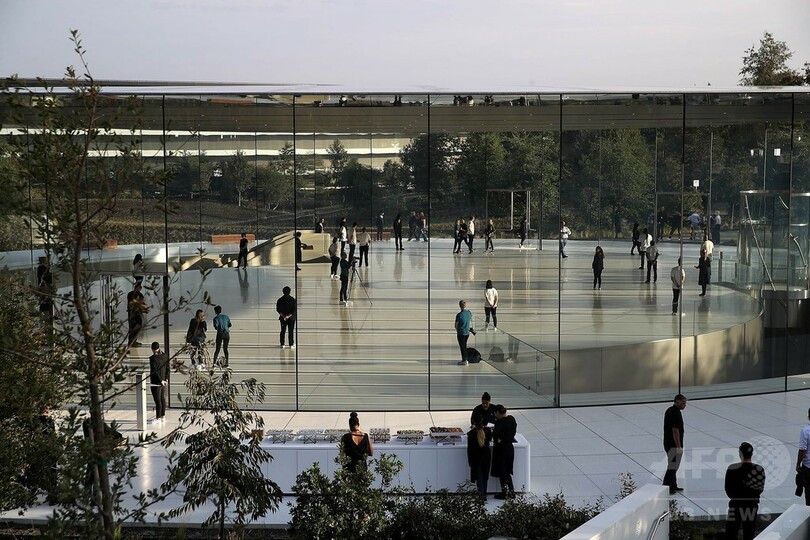 【9月13日 AFP】米アップル(Apple)は12日、スマートフォン「iPhone(アイフォーン)」などの新商品の発表に合わせ、カリフォルニア(California)州クパチーノ(Cupertino)にある新本社「アップルパーク(Apple Park)」に併設された「スティーブ・ジョブズ・シアター(Steve Jobs Theatre)」の内部を初公開した。(c)AFP