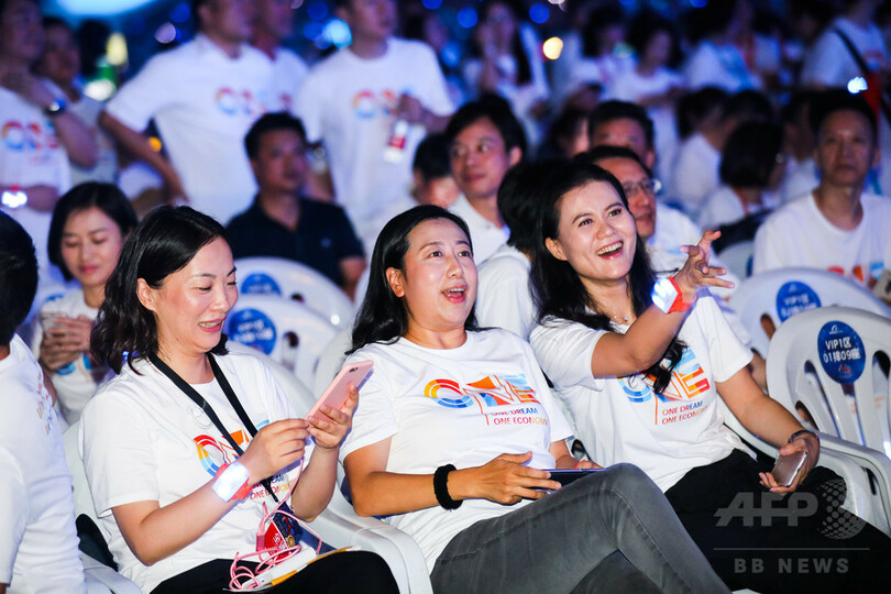 毎年社員が楽しみにしている演目の1つは、創業者ジャック・マー(Jack Ma)会長の七変化だ。今年はマイケル・ジャクソン(Michael Jackson)のダンスを披露。前日の夜、夢の中でも練習していたのだという。パーティーでは、同グループの張勇(Daniel Zhang)CEO、アントフィナンシャル(Ant Financial)の井賢棟(Jing Xiandong)CEOと、マー会長がそれぞれスピーチをした。(c)CNS/JCM/AFPBB News