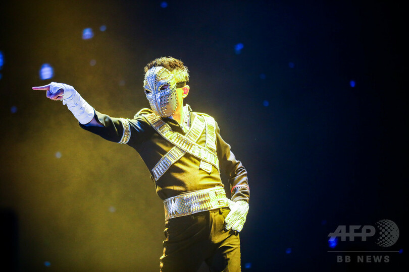 毎年社員が楽しみにしている演目の1つは、創業者ジャック・マー(Jack Ma)会長の七変化だ。今年はマイケル・ジャクソン(Michael Jackson)のダンスを披露。前日の夜、夢の中でも練習していたのだという。パーティーでは、同グループの張勇(Daniel Zhang)CEO、アントフィナンシャル(Ant Financial)の井賢棟(Jing Xiandong)CEOと、マー会長がそれぞれスピーチをした。(c)CNS/JCM/AFPBB News