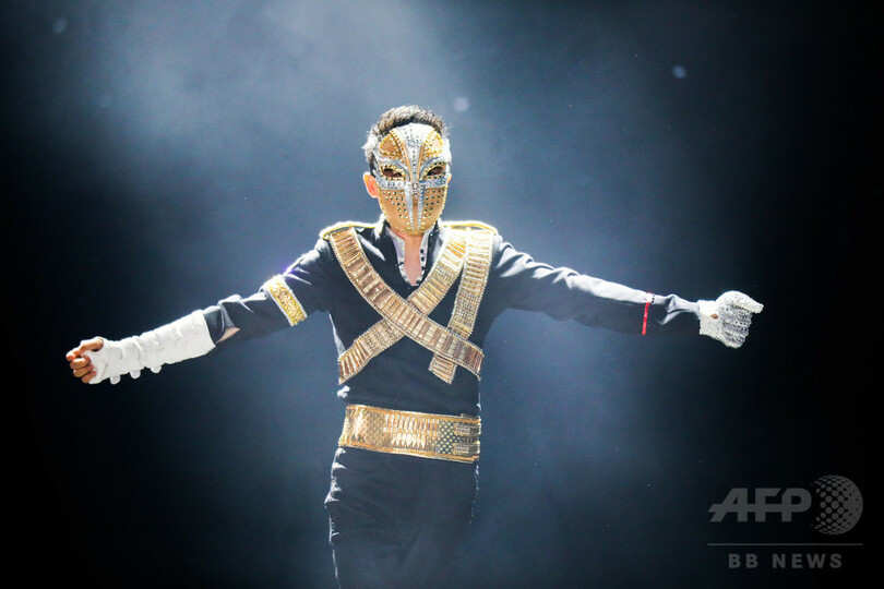 毎年社員が楽しみにしている演目の1つは、創業者ジャック・マー(Jack Ma)会長の七変化だ。今年はマイケル・ジャクソン(Michael Jackson)のダンスを披露。前日の夜、夢の中でも練習していたのだという。パーティーでは、同グループの張勇(Daniel Zhang)CEO、アントフィナンシャル(Ant Financial)の井賢棟(Jing Xiandong)CEOと、マー会長がそれぞれスピーチをした。(c)CNS/JCM/AFPBB News