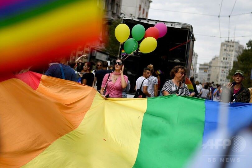 【9月18日 AFP】セルビアの首都ベオグラード(Belgrade)で17日、LGBT(レズビアン、ゲイ、バイセクシュアル、トランスジェンダー)の祭典「ゲイ・プライド(Gay Pride)」のパレードが開催された。厳重な警備の下で開催された毎年恒例のイベントには、同性愛者であることを公表しているアナ・ブルナビッチ(Ana Brnabic)首相(41)も参加し、より寛容な社会に向かって「一歩ずつ」前進しているとコメントした。