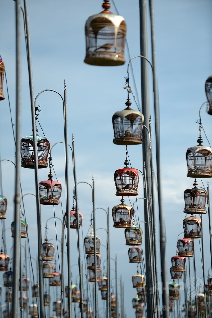 【9月19日 AFP】タイ南部ナラティワット(Narathiwat)県で18日、毎年恒例の鳥のさえずりコンテストが開催され、自国タイをはじめマレーシアやシンガポールから1400羽を超える鳥が参加し、美声を競った。(c)AFP