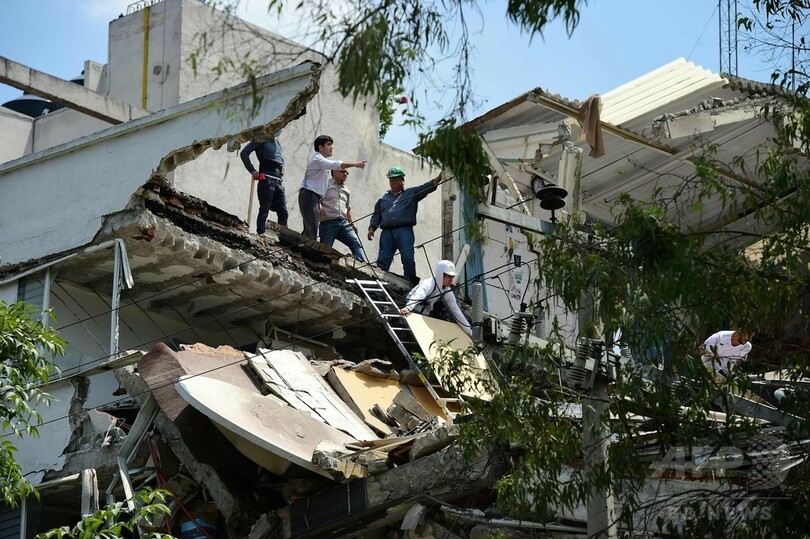 【9月20日 AFP】(写真追加、更新)メキシコの首都メキシコ市(Mexico City)近郊で19日、マグニチュード(M)7.1の地震が発生し、当局によると少なくとも105人が死亡した。大きな揺れに襲われた同市では複数の建物が崩壊し、救助活動が続いている。同日は1985年の大地震からちょうど32年の日だった。