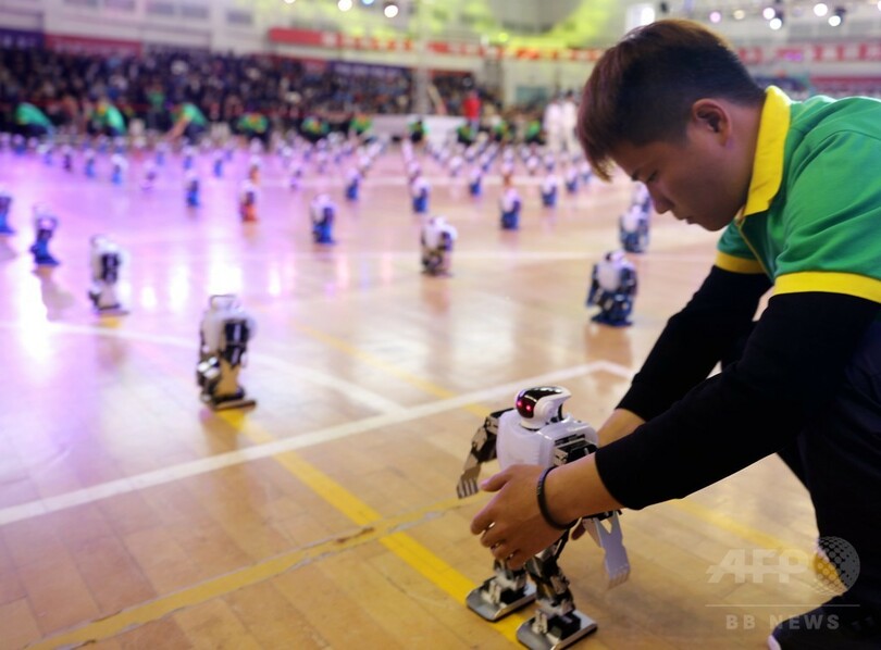 中国各地から集結した500チームが、2日間にわたりロボットのパフォーマンスやロボットによる陸上競技、体操、球技などの項目で技術を競い合った。(c)CNS/JCM/AFPBB News