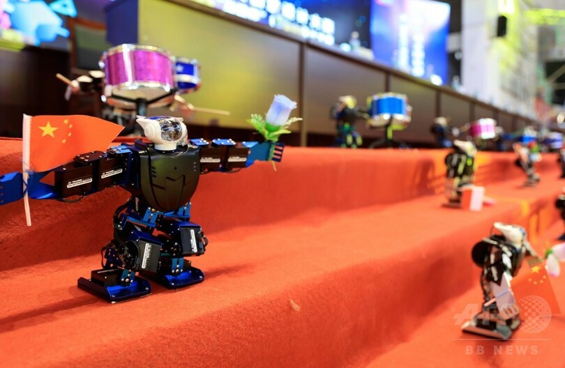 中国各地から集結した500チームが、2日間にわたりロボットのパフォーマンスやロボットによる陸上競技、体操、球技などの項目で技術を競い合った。(c)CNS/JCM/AFPBB News