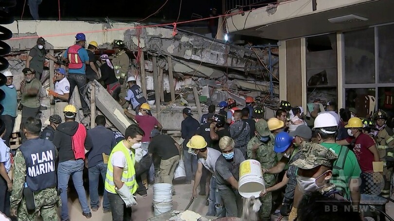【9月21日 AFP】(更新)マグニチュード(M)7.1の地震に見舞われたメキシコ中部では、20日も懸命の救助活動が続けられている。大きな被害が出ている首都メキシコ市(Mexico City)では、学校の倒壊現場で複数の生体反応が確認されているが救助活動は難航。国民が固唾をのんで見守っている。地震による死者は少なくとも230人に達した。
