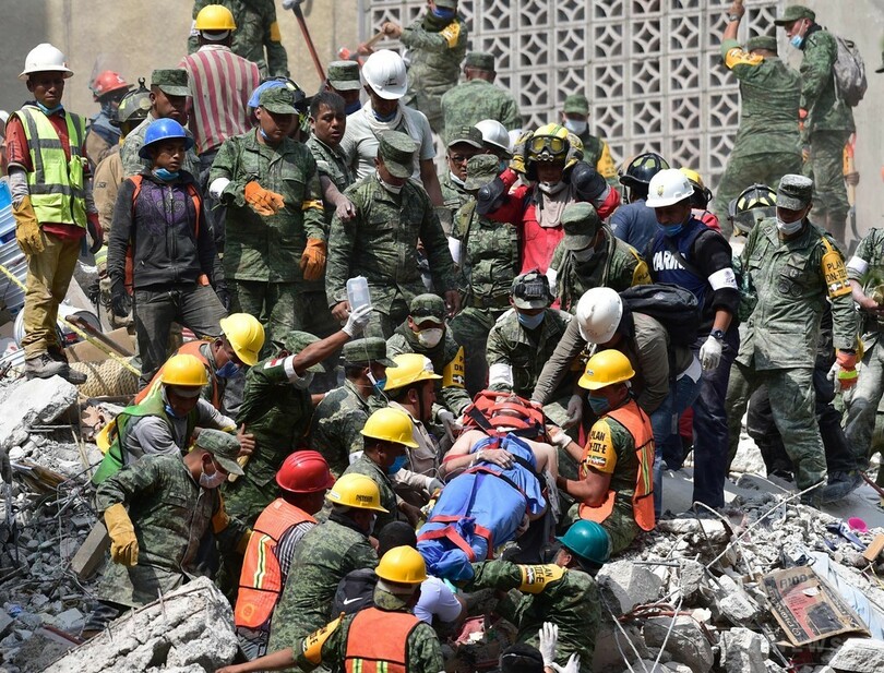 【9月21日 AFP】(更新)マグニチュード(M)7.1の地震に見舞われたメキシコ中部では、20日も懸命の救助活動が続けられている。大きな被害が出ている首都メキシコ市(Mexico City)では、学校の倒壊現場で複数の生体反応が確認されているが救助活動は難航。国民が固唾をのんで見守っている。地震による死者は少なくとも230人に達した。