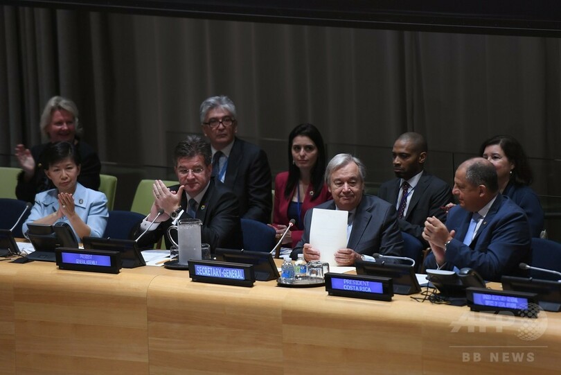 【9月21日 AFP】米ニューヨーク(New York)の国連(UN)本部で20日、核兵器禁止条約の署名式典が開かれ、北朝鮮の核開発に伴う危機感が広がる中、51か国・地域が署名に臨んだ。