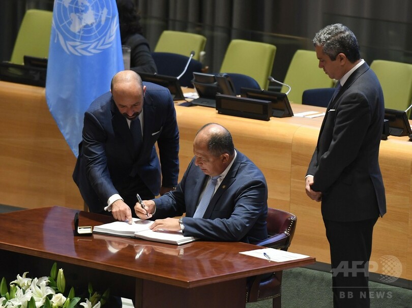 【9月21日 AFP】米ニューヨーク(New York)の国連(UN)本部で20日、核兵器禁止条約の署名式典が開かれ、北朝鮮の核開発に伴う危機感が広がる中、51か国・地域が署名に臨んだ。