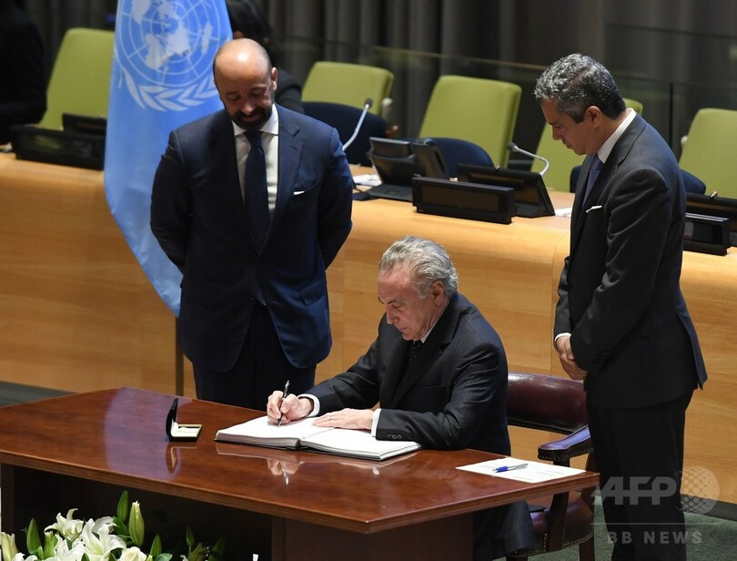 【9月21日 AFP】米ニューヨーク(New York)の国連(UN)本部で20日、核兵器禁止条約の署名式典が開かれ、北朝鮮の核開発に伴う危機感が広がる中、51か国・地域が署名に臨んだ。