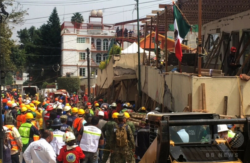 【9月22日 AFP】(更新)メキシコ中部で起きた地震で、同国当局は21日、首都メキシコ市(Mexico City)で倒壊した学校で少女ががれきの下敷きとなっているとの情報を否定した。発生から2日が経過した地震の現場でいまだに続く混乱が示された形だ。