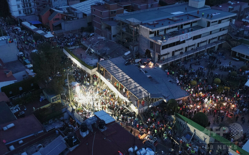 【9月22日 AFP】(更新)メキシコ中部で起きた地震で、同国当局は21日、首都メキシコ市(Mexico City)で倒壊した学校で少女ががれきの下敷きとなっているとの情報を否定した。発生から2日が経過した地震の現場でいまだに続く混乱が示された形だ。