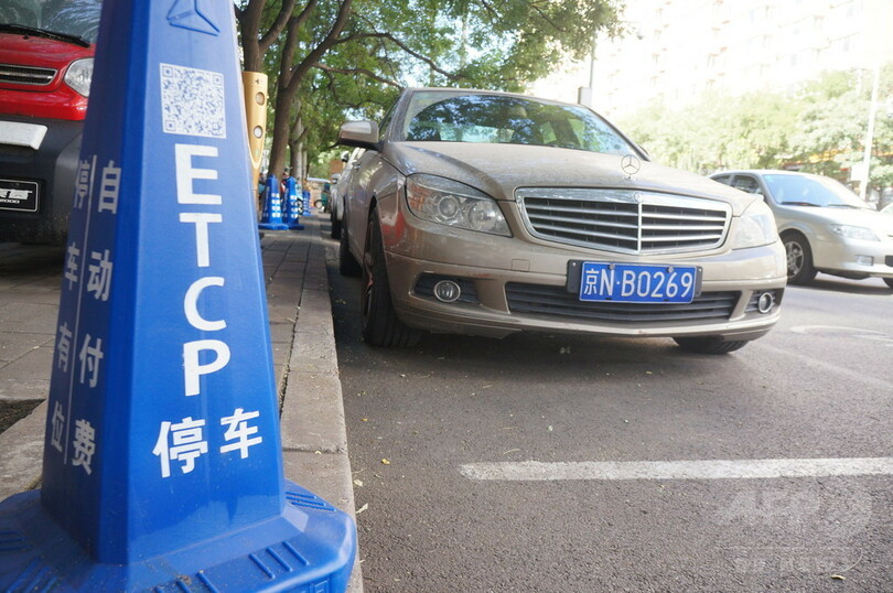 電子決済は、ウィーチャットペイ(WeChat Pay)、アリペイ(Alipay)の両方に対応。北京市交通委員会の路上駐車管理ガイドラインによると、2017年中に北京市内の朝陽区、東城区(Dongcheng)など主要6区と通州区(Tongzhou)の路肩3916か所に路上パーキングシステムの導入を実現させ、2019年には北京市内の路上パーキングすべてに電子決済システムの導入を目指すとしている。(c)CNS/JCM/AFPBB News
