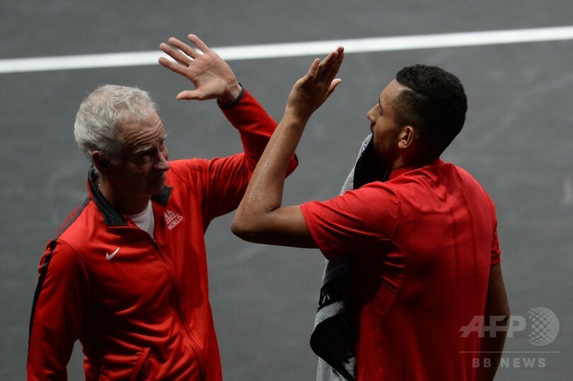ビッグサーバー同士の一戦となった第3試合では、世界ランキング20位のニック・キリオス(Nick Kyrgios、オーストラリア)が4-6、7-6(7-4)、10-6で同19位のトマス・ベルディハ(Tomas Berdych、チェコ)から逆転勝ちを収め、ワールドチームが一矢報いた。