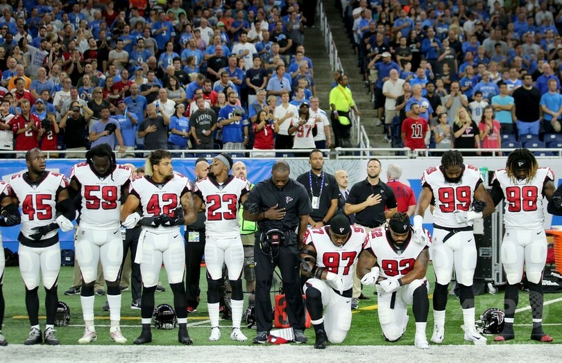 【9月25日 AFP】ドナルド・トランプ(Donald Trump)米大統領が試合前の国歌演奏で人種差別への関心を喚起するために膝をつく選手との対立を激化させる中、米ナショナル・フットボール・リーグ(NFL)では24日、各チームが抗議行動の波を広げている。