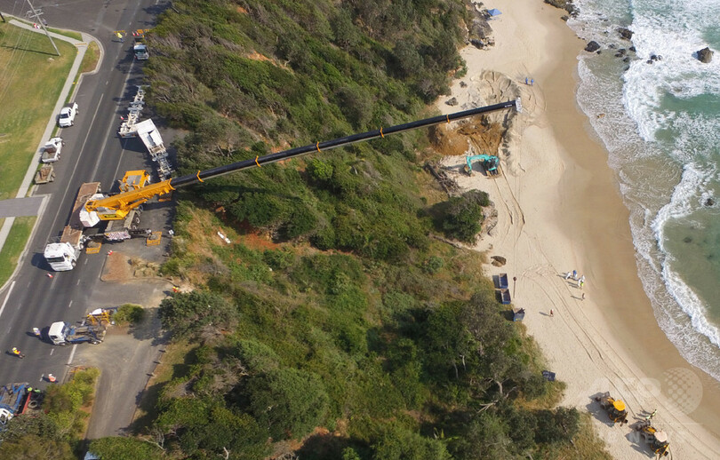 懸念の声の高まりを受け、ニューサウスウェールズ州政府が介入してクジラの死骸処理にかかる費用を負担。25日、崖の上に大きなクレーンを設置してショベルカーを砂浜に下ろし、クジラの死骸の掘り起こし作業に着手した。地元当局者によると、掘り起こされた死骸はショベルカーの爪を使って解体し、埋め立て地に移送するという。(c)AFP