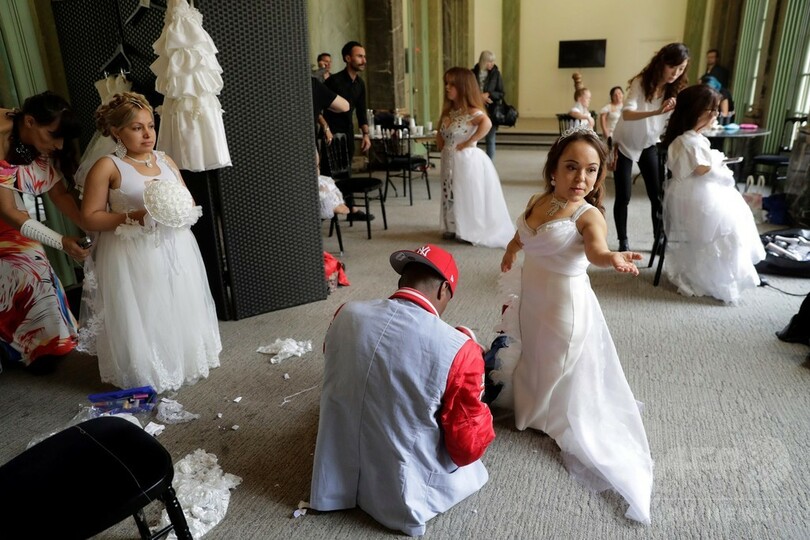 【9月27日 AFP】フランスの首都パリ(Paris)で26日、「インターナショナル・ドワーフ・ファッションショー(The International Dwarf Fashion Show)」が開催され、低身長のモデルたちが純白のドレス姿でランウェイを歩いた。(c)AFP