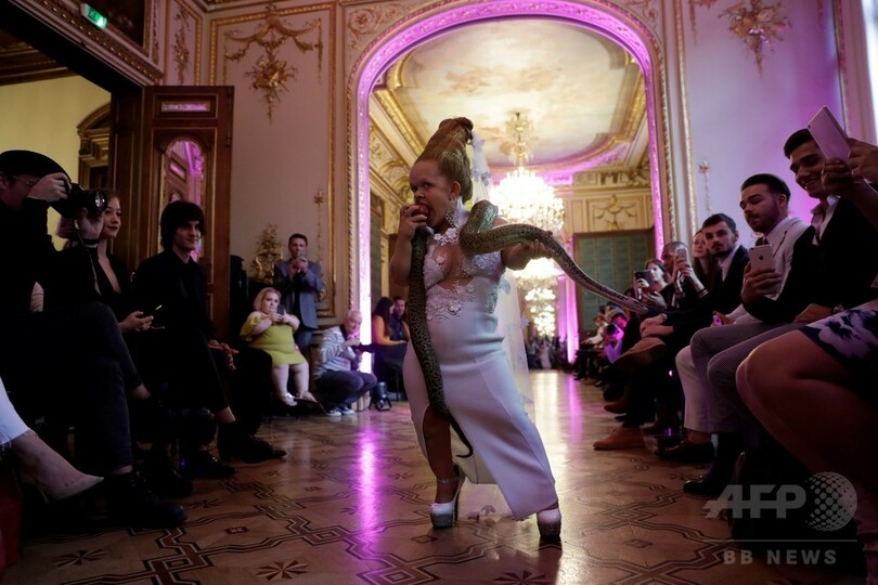 【9月27日 AFP】フランスの首都パリ(Paris)で26日、「インターナショナル・ドワーフ・ファッションショー(The International Dwarf Fashion Show)」が開催され、低身長のモデルたちが純白のドレス姿でランウェイを歩いた。(c)AFP