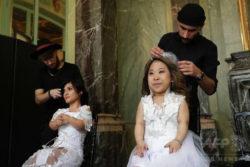 【9月27日 AFP】フランスの首都パリ(Paris)で26日、「インターナショナル・ドワーフ・ファッションショー(The International Dwarf Fashion Show)」が開催され、低身長のモデルたちが純白のドレス姿でランウェイを歩いた。(c)AFP