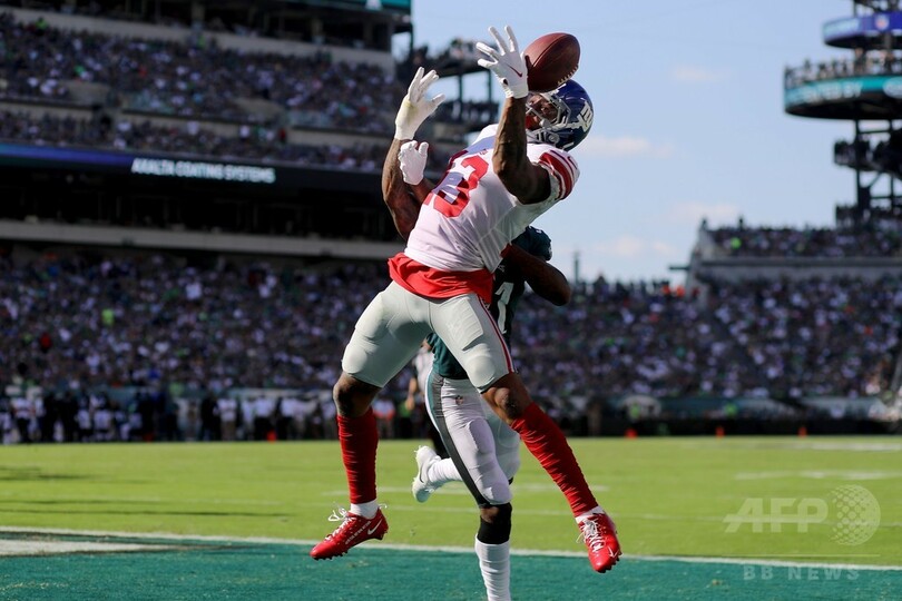 【9月27日 AFP】米ナショナル・フットボール・リーグ(NFL)、ニューヨーク・ジャイアンツ(New York Giants)のオデル・ベッカム(Odell Beckham)がタッチダウン後に見せた「犬の小便」ポーズが波紋を広げている。球団オーナーが不快感を示す一方、インターネットでは、NFLの選手たちを批判したドナルド・トランプ(Donald Trump)米大統領に対するメッセージではないかとの声も出ている。