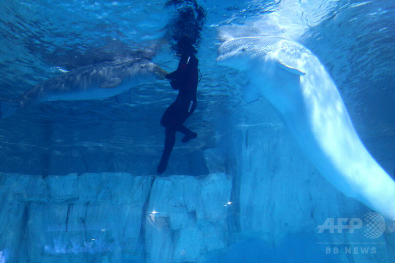 極地海洋館では今年7月、2頭のイルカが相次いで子供を出産しており、健康状態もとても良い。もう一頭の雌イルカも出産前だといい、優れた繁殖活動の成果が数多く上がっている。ベルーガやイルカの赤ちゃんの誕生にともない、長沙海底世界のスタッフも徐々に増員しており、ベルーガやイルカの赤ちゃんの成長も繁殖・保護のための貴重な蓄積となっている。(c)CNS/JCM/AFPBB News