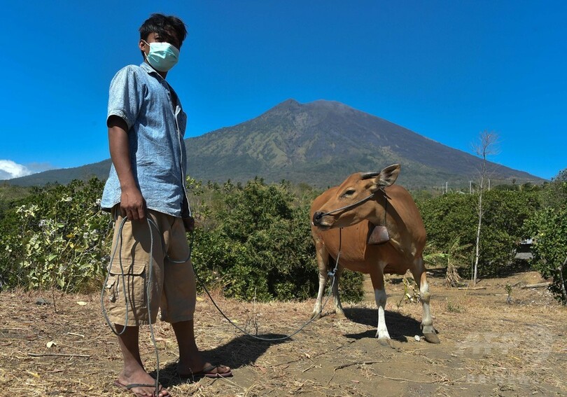 アグン山の山腹からは、牛など約1万頭の家畜も避難した。家畜は特に農家にとって貴重で、一部には避難を拒んでいる人もいるとされる。