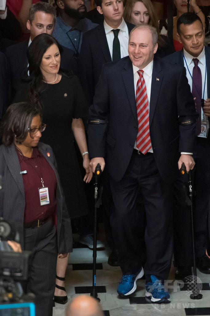 【9月29日 AFP】今年6月に米首都ワシントン(Washington D.C. )郊外で銃撃され、重傷を負った共和党のスティーブ・スカリス(Steve Scalise)下院議員(51)が28日、3か月半ぶりに議会に復帰した。