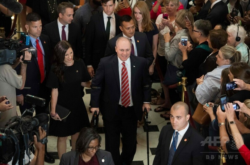 【9月29日 AFP】今年6月に米首都ワシントン(Washington D.C. )郊外で銃撃され、重傷を負った共和党のスティーブ・スカリス(Steve Scalise)下院議員(51)が28日、3か月半ぶりに議会に復帰した。