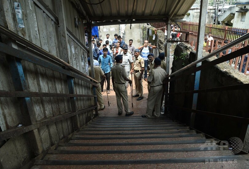 【9月29日 AFP】(更新、写真追加)インドの経済的中心地ムンバイ(Mumbai)で29日朝のラッシュ時、鉄道駅に至る歩道橋上で通勤客が殺到して倒れ、少なくとも22人が死亡した。
