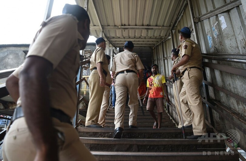 【9月29日 AFP】(更新、写真追加)インドの経済的中心地ムンバイ(Mumbai)で29日朝のラッシュ時、鉄道駅に至る歩道橋上で通勤客が殺到して倒れ、少なくとも22人が死亡した。