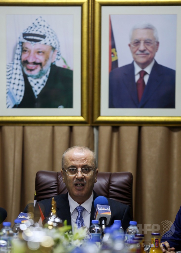 同自治政府のラミ・ハムダラ(Rami Hamdallah)首相は前日の2日、パレスチナ暫定統一内閣が総辞職した2015年6月以来初めてガザ入りした。 (c)AFP/Sakher Abu el-Oun