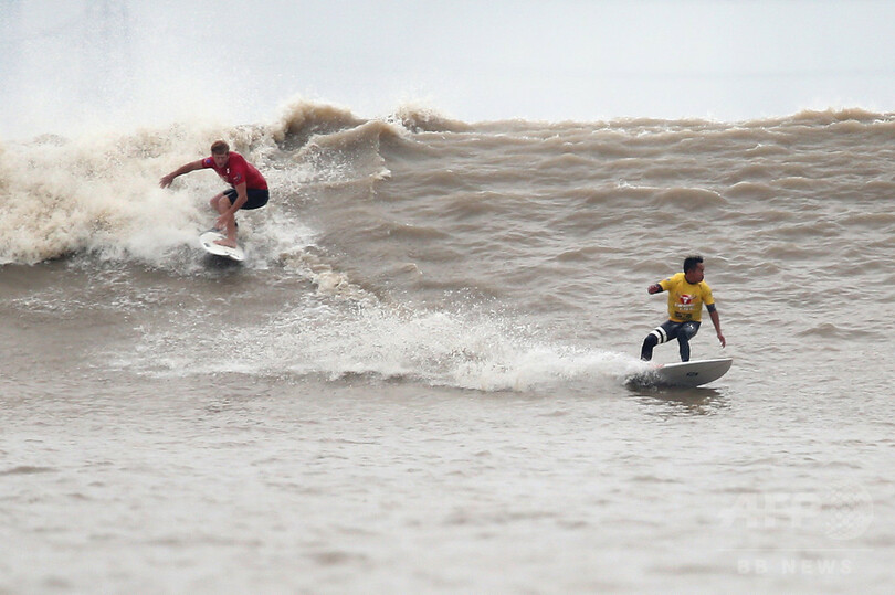 世界のトップサーファーが杭州に集う 銭塘江でサーフィン大会