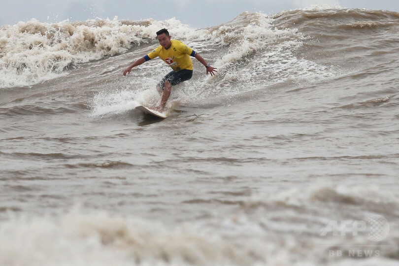 【10月10日 CNS】カラバオ(Carabao)銭塘江(Qiangtang River)サーフィン大会が5日、中国・杭州(Hangzhou)で開催された。