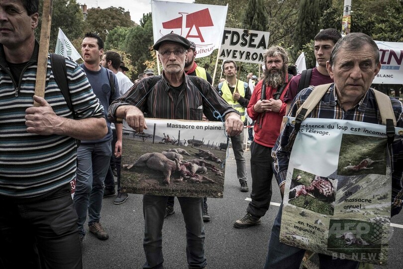 オオカミに殺される動物は年1万匹超、ヒツジ連れて抗議デモ フランス