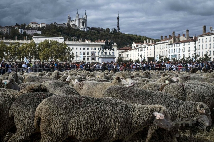 2016年にオオカミに殺された動物の数は1万匹を超えるとの当局の発表を受け、フランスのリヨン(Lyon)で9日、通りを埋め尽くすほどのヒツジを連れた大勢の農家が対策強化を求める抗議デモを行った。