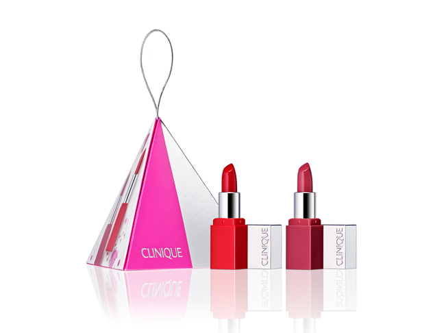 パーティーバッグにも入るサイズのリップカラー2本セット「メリー ポップ」は、デイリーにも使いやすいモーブなピンクリップとパーティーに映える旬の赤リップを、ホリデーらしいオーナメントボックスにセット。人気の「クリニーク ポップ」のギフトサイズで、見たままの発色に加え、保湿成分がしっとり唇をかなえる。いつでも、どこでも、心ときめくポップな唇へ!