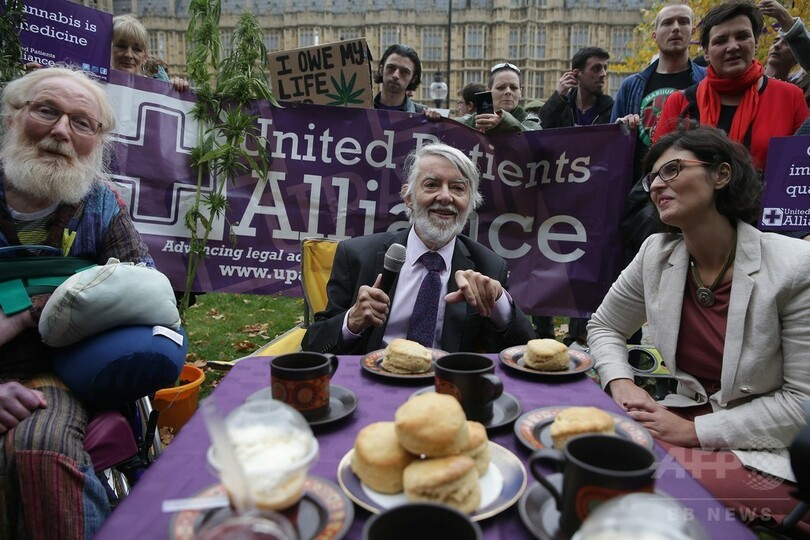 【10月11日 AFP】英ロンドン(London)で10日、医療用大麻の合法化を訴える試みとして、推進団体が国会議事堂前で大麻入りの紅茶やケーキを提供する「お茶会」を開催し、野党・労働党のポール・フリン(Paul Flynn)議員など複数の国会議員が参加した。
