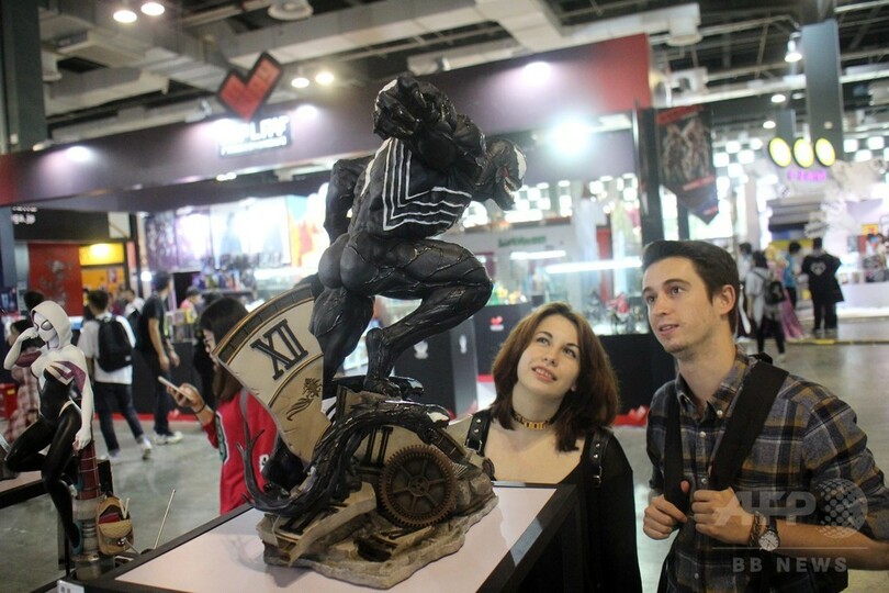 これまでのような日本の漫画が主流のコミコンとは異なり、フィギュアの販売、コスプレや漫画家によるサイン会などすべて欧米風のものを主に展示。マーベル(Marvel)コミック、DCコミックス(DC Comics)などのヒーローや、ディズニー(Disney)のプリンセス、スターウォーズ(Star Wars)のジェダイ(Jedi)や帝国軍などのさまざまなキャラクターがファンを楽しませた。(c)CNS/JCM/AFPBB News
